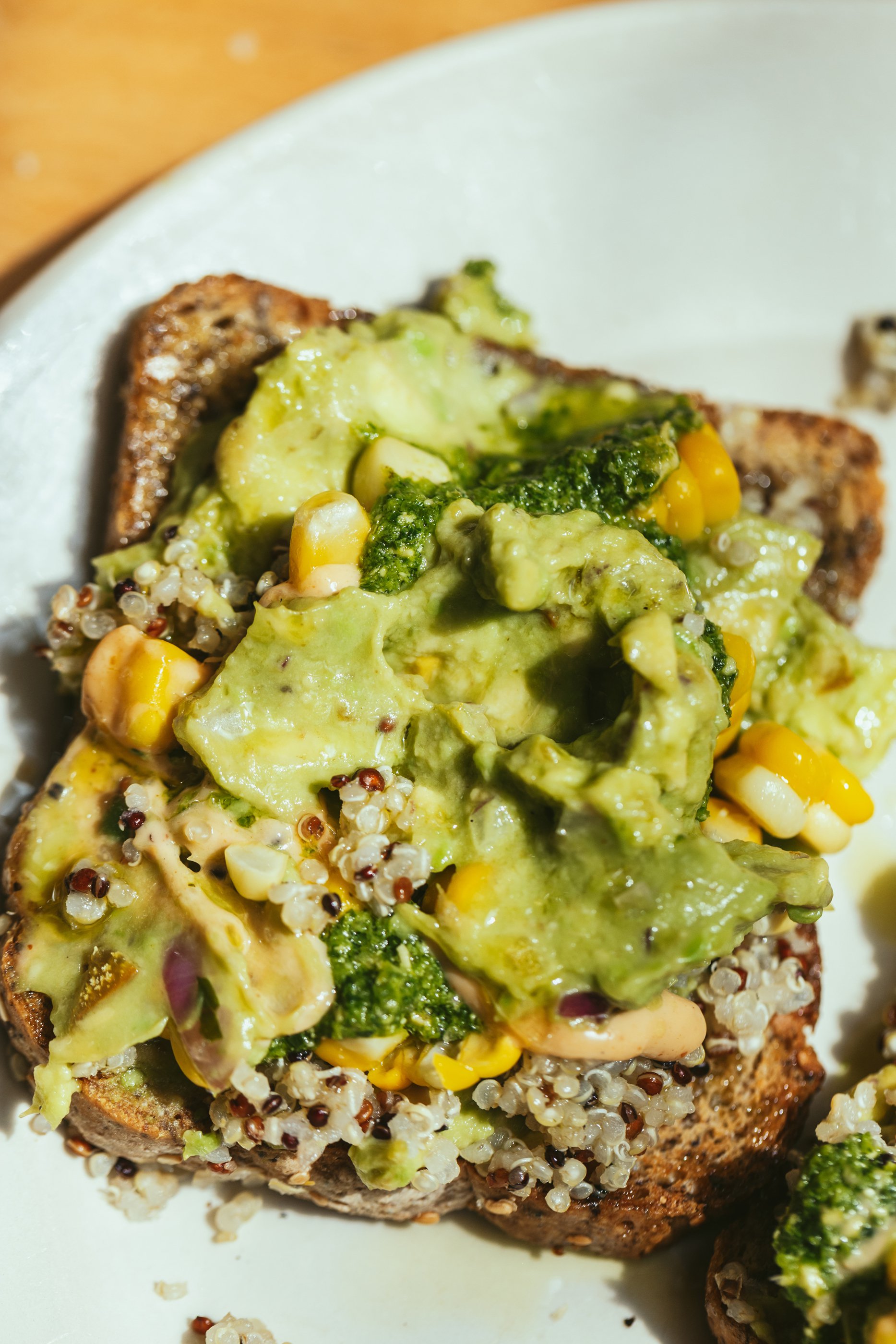 And the toast, the bread. I eat a lot of bread, real bread, the kind made with patience and passion, and mostly from Daily Bread. Often I purchase Thoroughbred Seven Seeds (Vegan) which is gluten-free and E464 free and that is what I have photographed here.