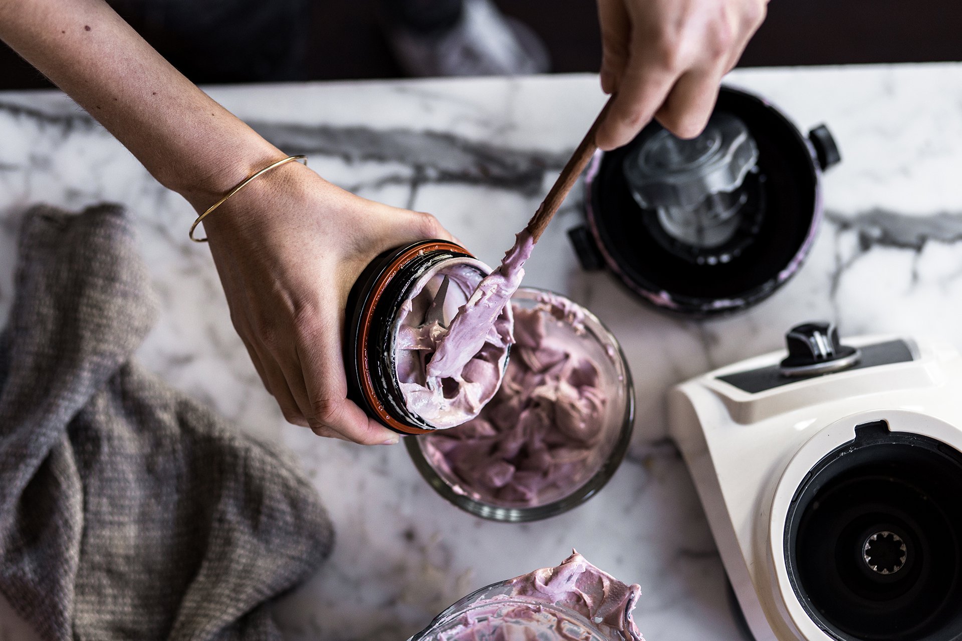 A word on the açaí frosting. With no chocolate ganache involved this time, we opted for a colourful sweet vegan buttercream. This frosting recipe yields 2 cups, plenty to coat your cake base. To reach a thicker buttercream consistency, feel free to leave the frosting firm up longer in the freezer, whisking approximately every 45 minutes, if you have time ahead. As per usual with cashews, soak them the day prior in cold water. If you forgot, 1 hour in hot water should do the trick. You also have the option to replace coconut yoghurt with ½ cup (120 ml) canned coconut milk or cream, almond yoghurt, or home-made creamy almond milk. Options are plenty. We mentioned in the recipe to use vanilla powder, though 1 tablespoon vanilla extract works as well.