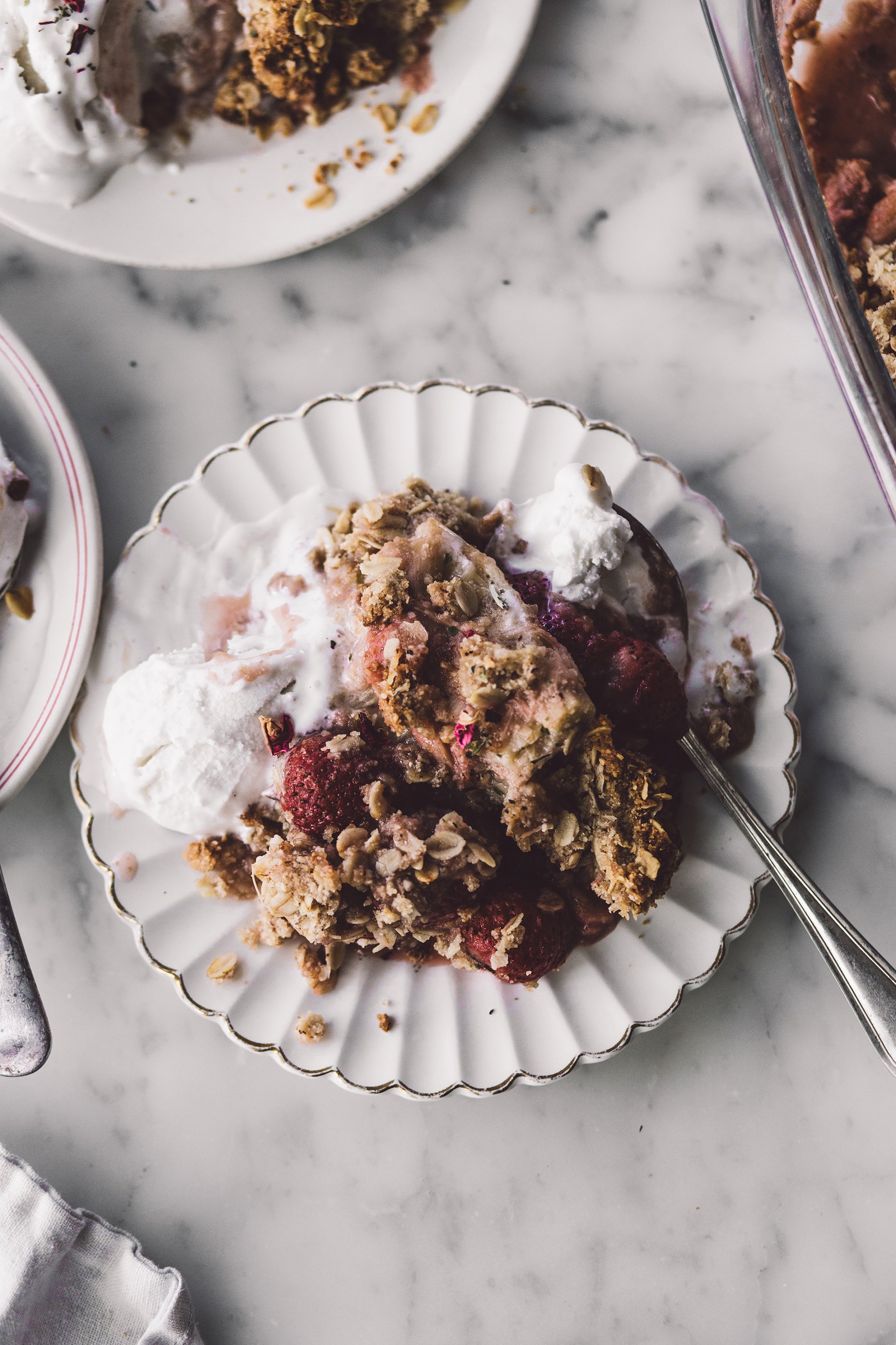 Once you dive into a health-aware, environmentally conscious lifestyle, eventually you go down this path of eating more nutrient-dense — where you understand the food you eat holds vibrational energy. As the information snowballs and you want to learn more, incorporate more, you’ll effortlessly and organically include more high vibrational ingredients into your daily routines. The below whole foods are personal must-haves used in this crumble recipe, why and how I love to use them.
