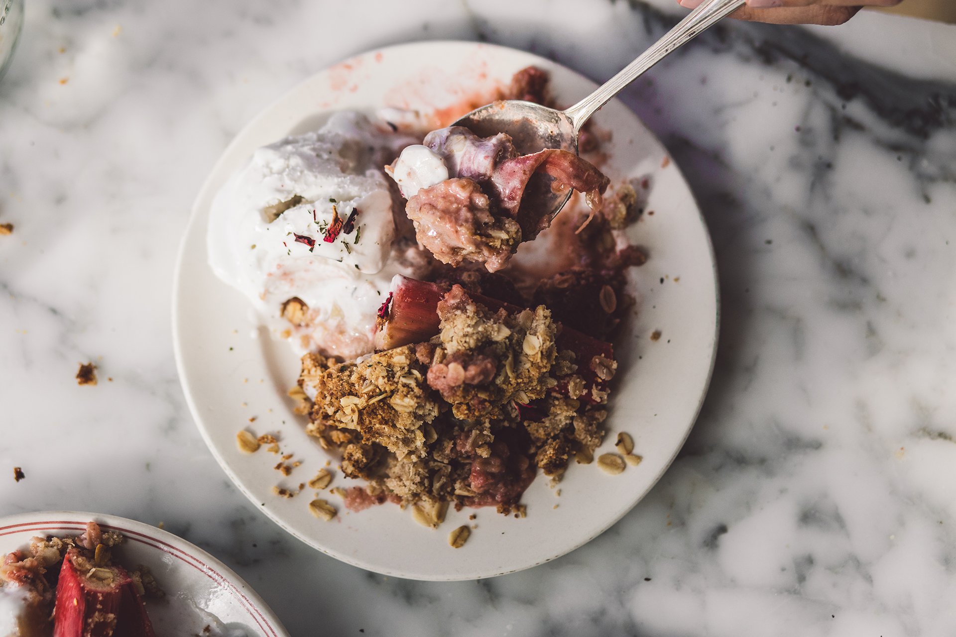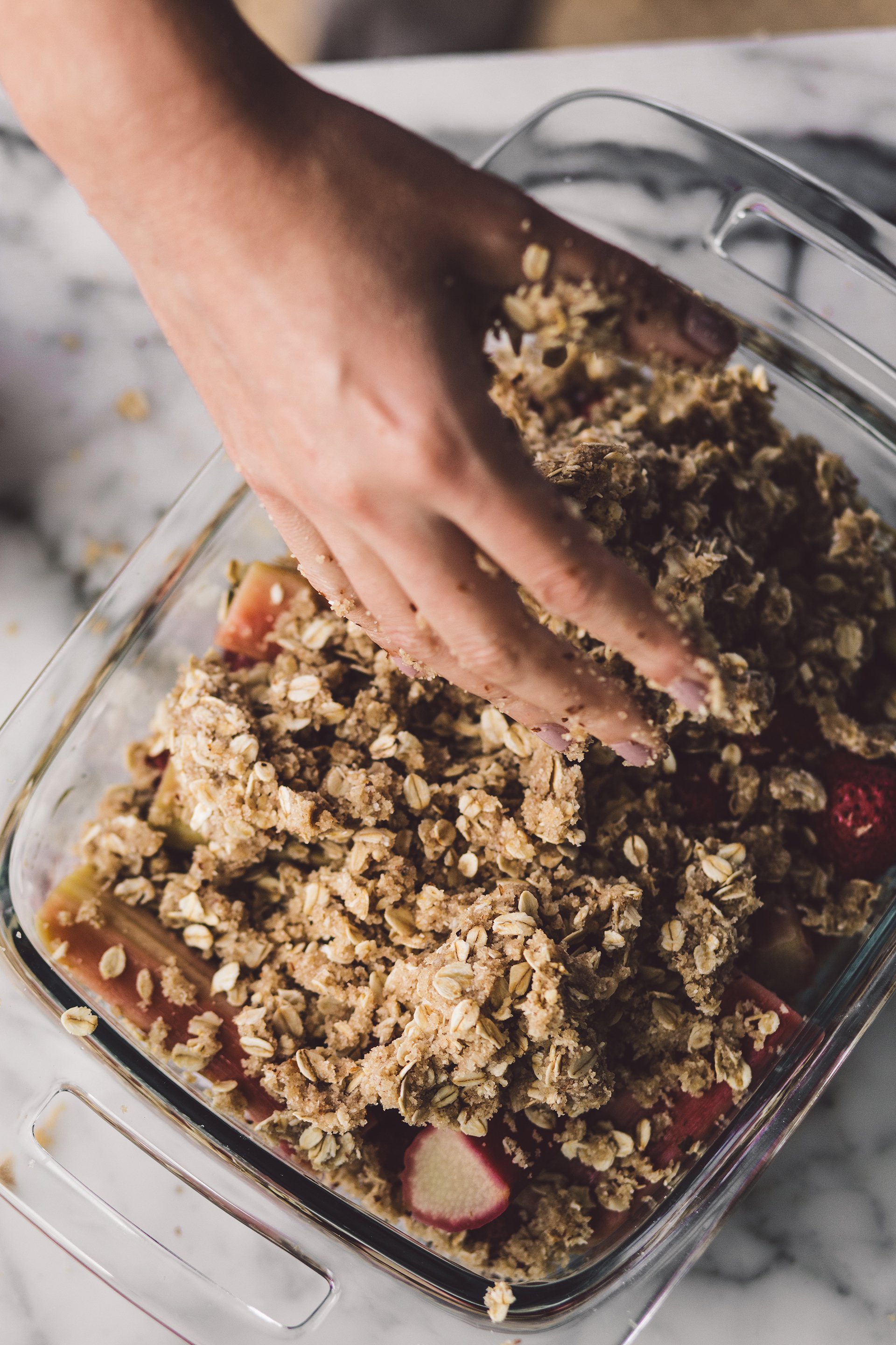 Almond meal This crumble recipe takes advantage of a type of gluten-free, grain-free flour almond meal which has a nutty and sweet flavour. With significant amounts of copper and magnesium — almond meal contains all the health benefits and bioavailable nutrients you would obtain from eating whole almonds. If you cannot find almond meal locally, alternatively you could prepare your own by processing whole almonds into a meal. Almond meal is also great added to granola or smoothies, sprinkled into oatmeal — effortlessly providing an antioxidant, protein or fibre packed hit.