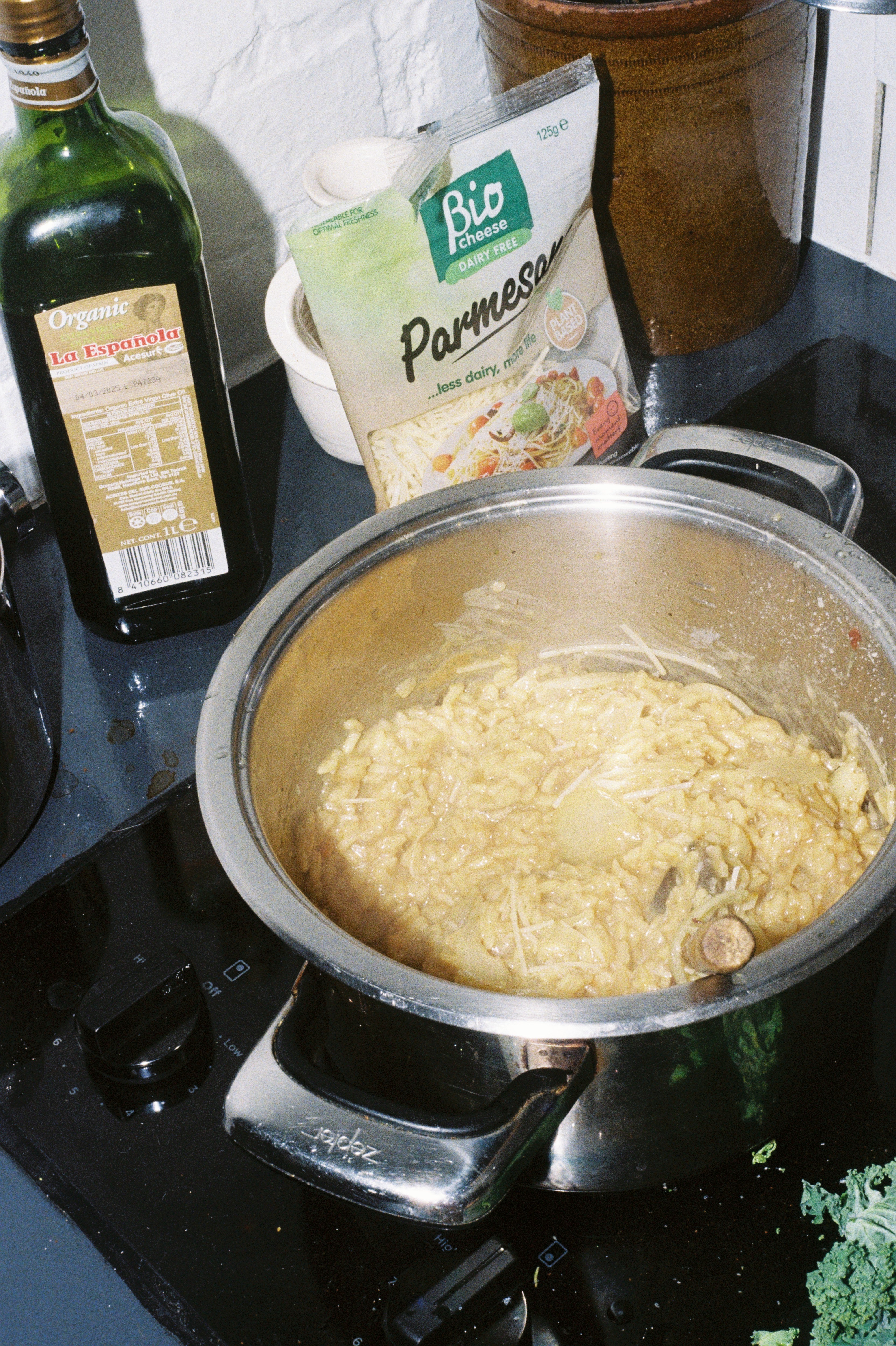This risotto was really what felt like the first real meal I made in our new home in Fitzroy, Naarm once all the between moving boxes were removed and all our things were in their new spots. Not shown in the photographs but always at the table, was a huge green salad drizzled with flaxseed oil and a big squeeze of lemon to really opened it up. A perfect dinner. To keep this risotto dish vegan, I have used oat cream and vegan Parmesan. These ingredients add a tonne of flavour and richness to the risotto without the dairy. The risotto is seasoned with pepper and sea salt to taste. I have been making this on repeat, my boyfriend loves it. I’d also like to make sure everyone knows that this risotto is not difficult to prepare and it was the best thing ever and you should definitely add it to your meal plan for the week.