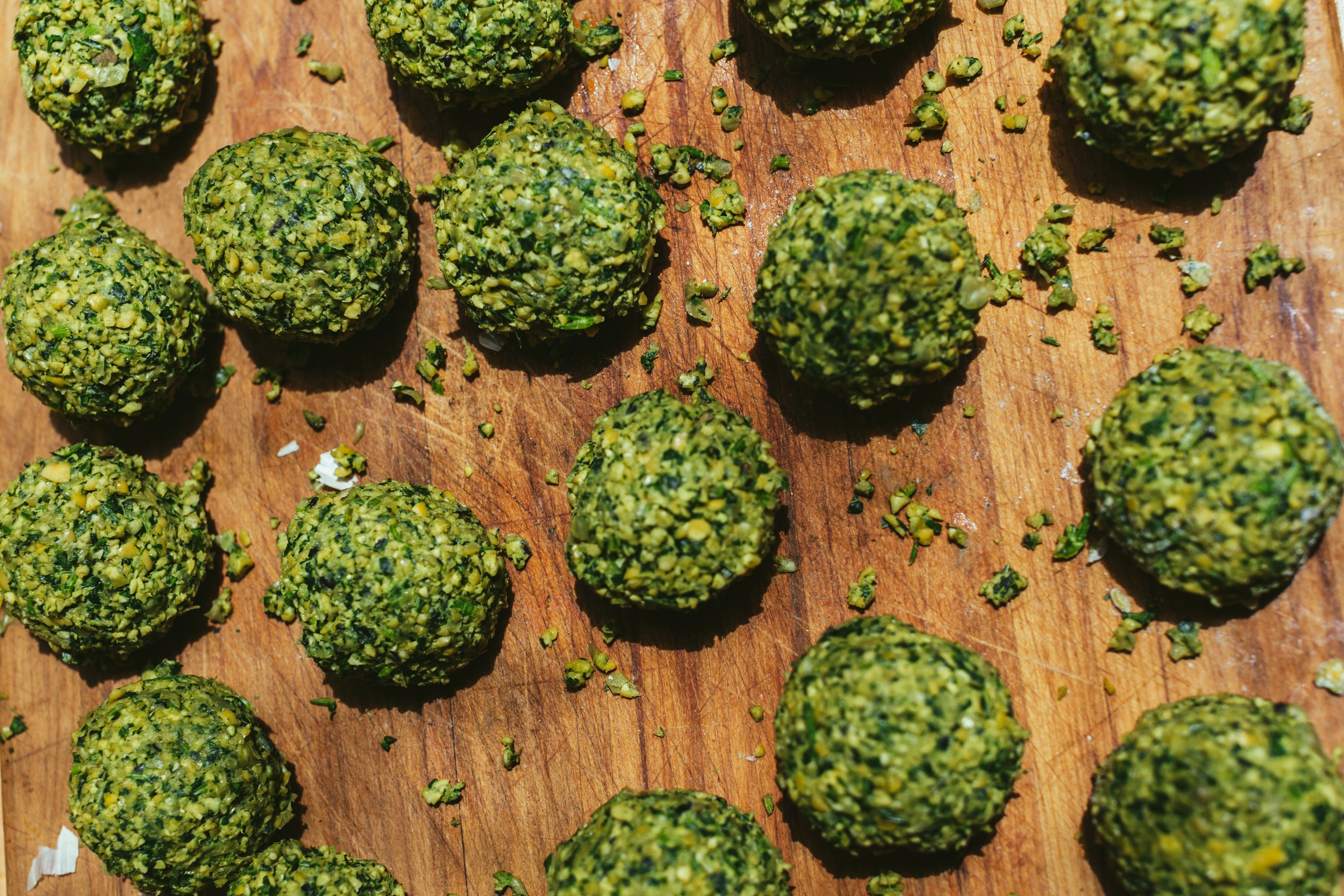 Using your hands, or an ice cream scoop, form the falafel mixture into balls or patties. If you find the mixture is too wet, you can add another tablespoon of chickpea flour. If it's too dry and crumbly, you can add a teaspoon or two of water or lemon juice.