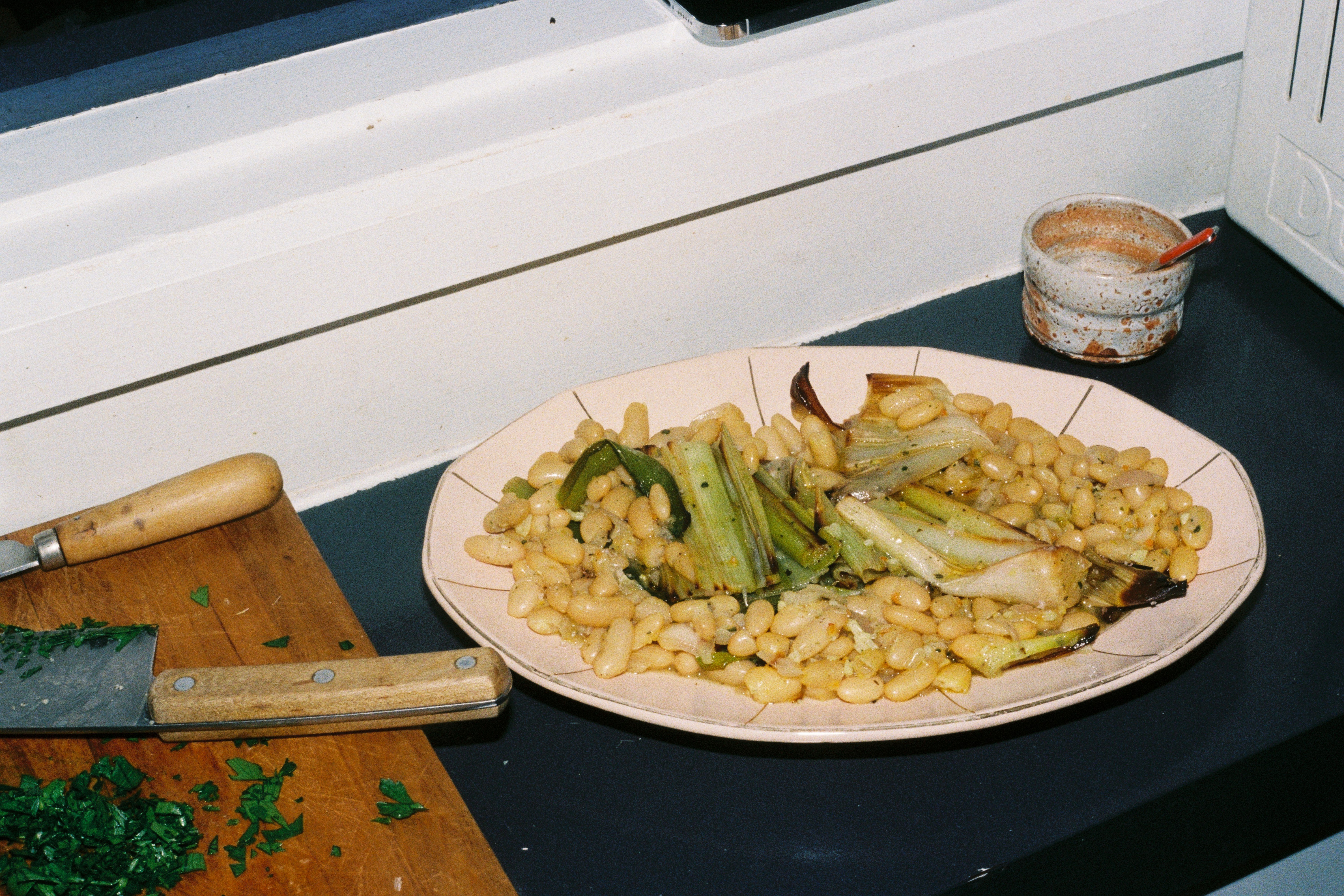 Remove the leeks from the oven. On a platter or in a big bowl, add your beans and arrange the leeks on top. Season to taste with sea salt and black pepper, and add a big squeeze of lemon. Serve immediately.
