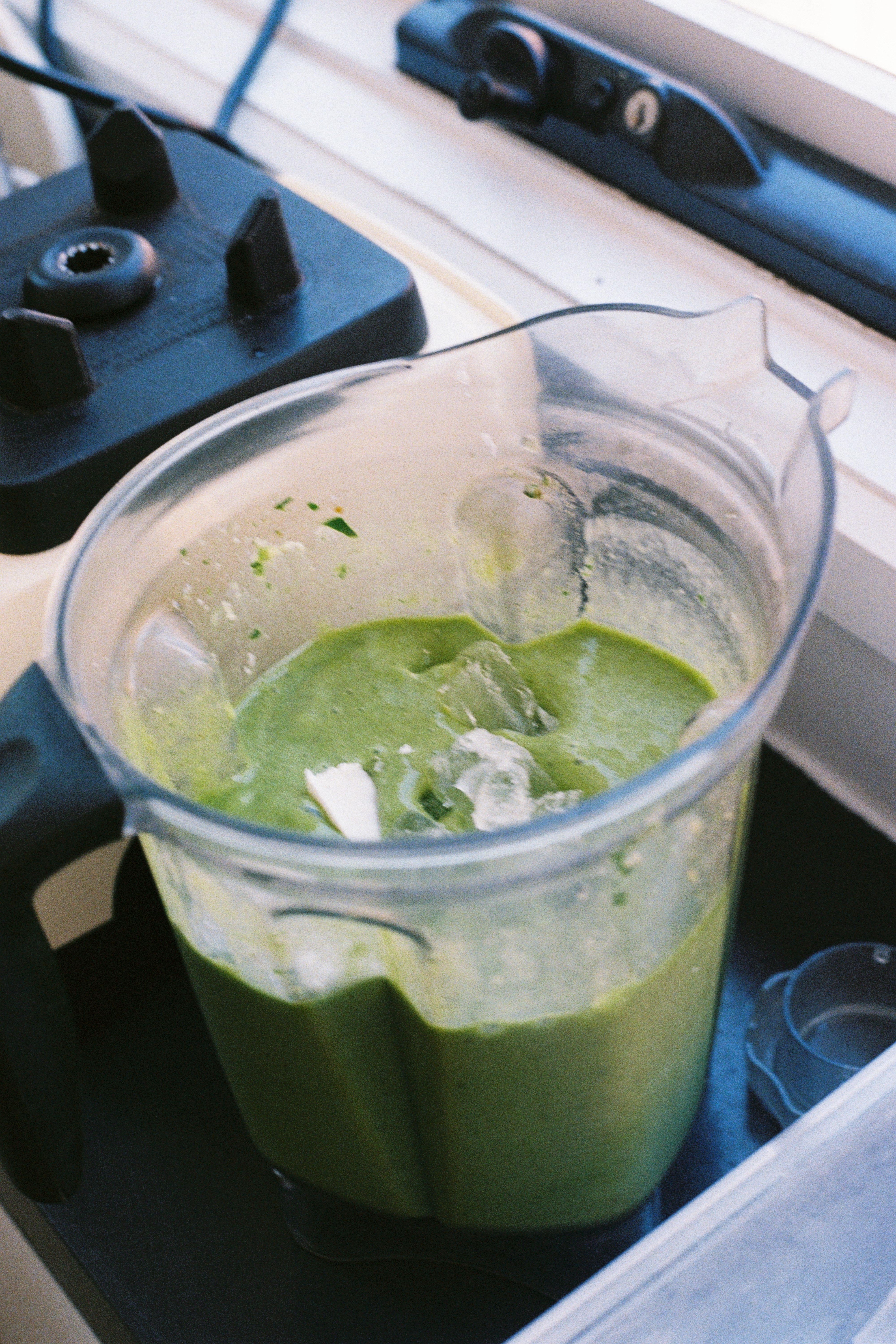 I don’t usually have frozen coconut milk cubes on hand but at the time of preparing this green smoothie, I had a half can of coconut milk left over from a curry that we had photographed for our ebook several days prior that was begging to be saved. I recall while I was working at Ceres Organics people had mentioned they often had leftover coconut milk from a 400 ml can and did not know what to do with it, well, this is what you do with it. You freeze your coconut milk in an ice cube tray and make super creamy fat metabolising smoothies with it. Potentially.