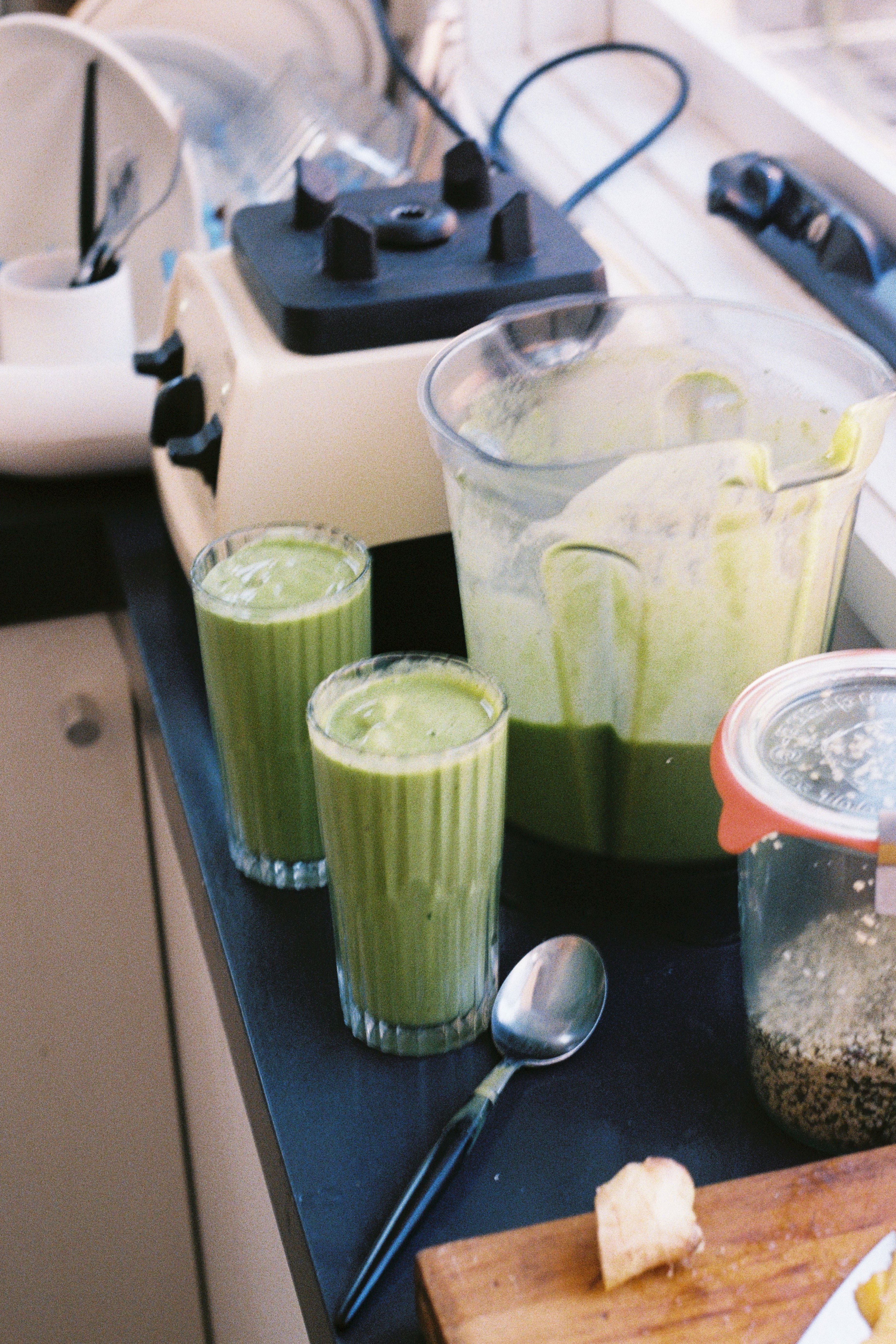 And back to the fat metabolising part. Coconut contains medium-chain triglycerides which stimulate energy through a process called thermogenesis, or heat production. There is some research to suggest that coconut consumption supports weight loss, however, this is going to completely depend on you and your genetics and unique biology. Coconut does, however, make this green smoothie energising and nourishing. I like my smoothies super thick and usually use a banana per serve though I understand some people are watching their carbohydrate intake, and you do what feels right for you. Coconut cubes provide a creaminess much like banana so there really is no compromise here. Or you use an extra frozen banana.
