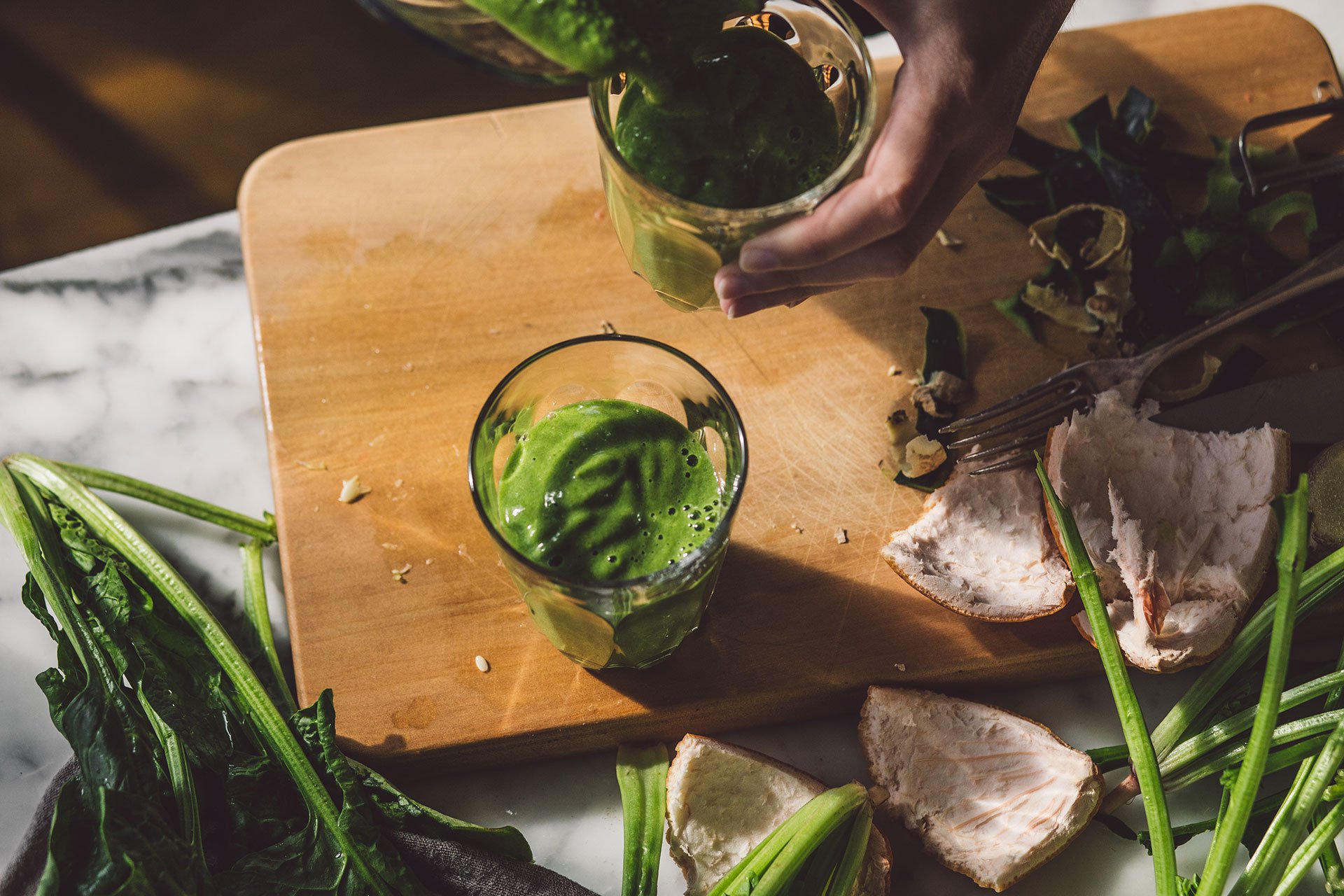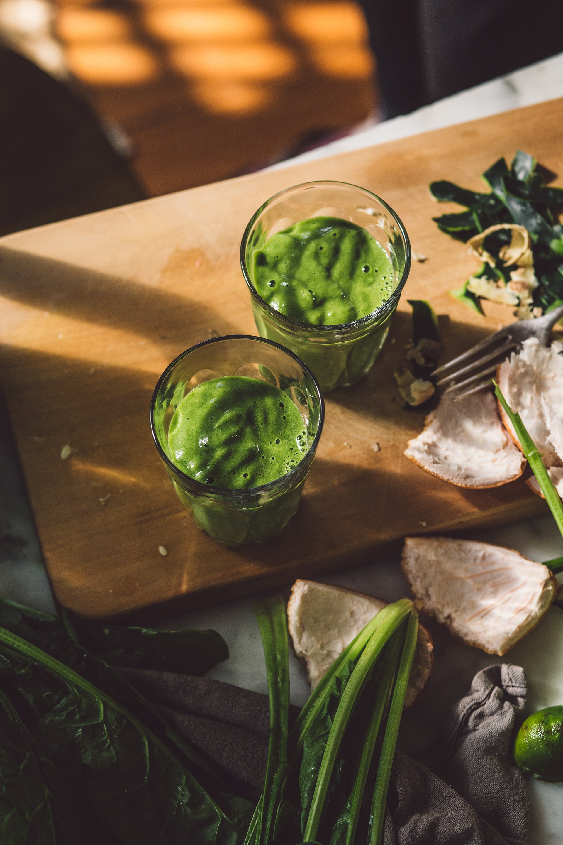 Since we’re publishing this one in our winter months, consider green smoothies your drink of choice all summer and beyond! And so depending on where you are reading this from, your seasonal greens will look different, so adapt to what you have locally available. If you are familiar with botany, you could explore your edible weed options. And if not, locate a foragers guide for your country and commit to the ritual of foraging and weed appreciation. My favourite plant-based cafe, Little Bird Kitchen, makes an incredible creamy green smoothie from foraged edible weeds. While kale and spinach are mainstay ingredients, green smoothies are also a wonderful way to use up those fresh herbs that might have seen better days sitting in your produce draw! Embrace variety, start here:
