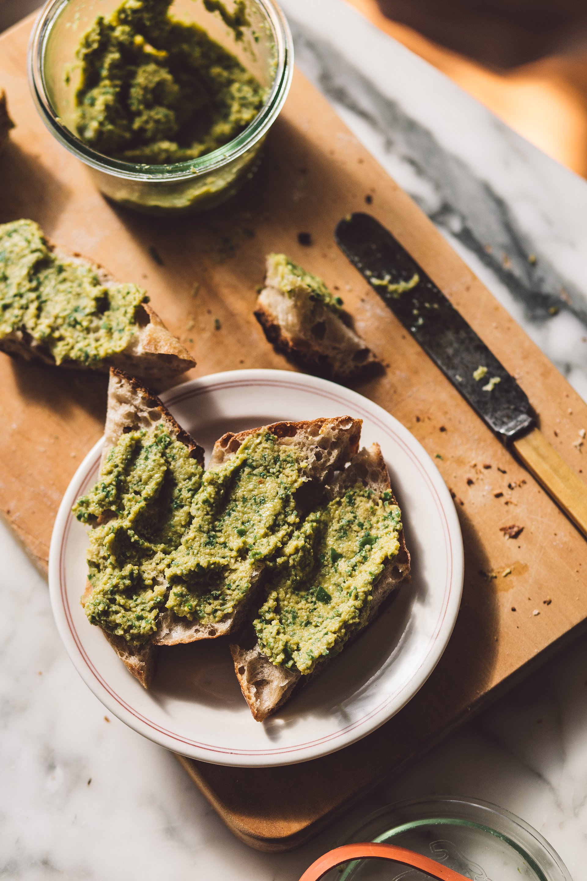 Making this olive tapenade, you are aiming for a dark taste. Never add lemon juice, or it will go unbalanced. We love garlic, so this tapenade recipe contains enough for a warm taste, but too much is undoubtedly going to take over the dominant flavours of capers and olive. It is called olive tapenade, after all, so let's stick to it. Here we used green olives, traditionally black olives are the protagonist, and kalamata olives will also do perfectly. You have options. As usual with olive oil and herbed dips, a night in the fridge will infuse the ingredients and deepen the flavours.