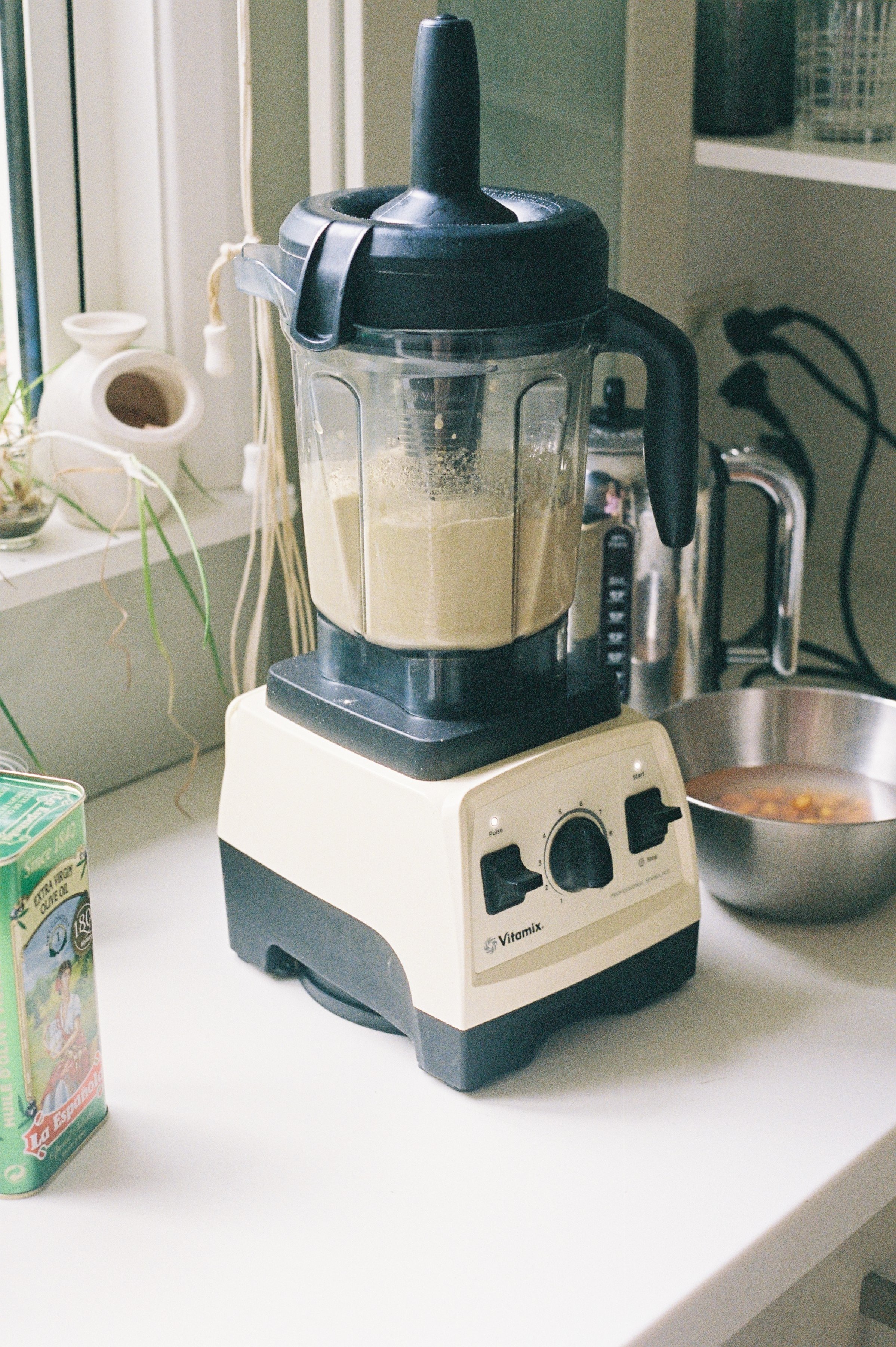 Blend the garlic, lemon juice, and 1 teaspoon of salt in a food processor or blender until kind of foamy. Let sit, the garlic will mellow out. Strain, removing as much liquid as possible. You’ll use this. Set aside the remaining solid garlic, you can use this for cooking.