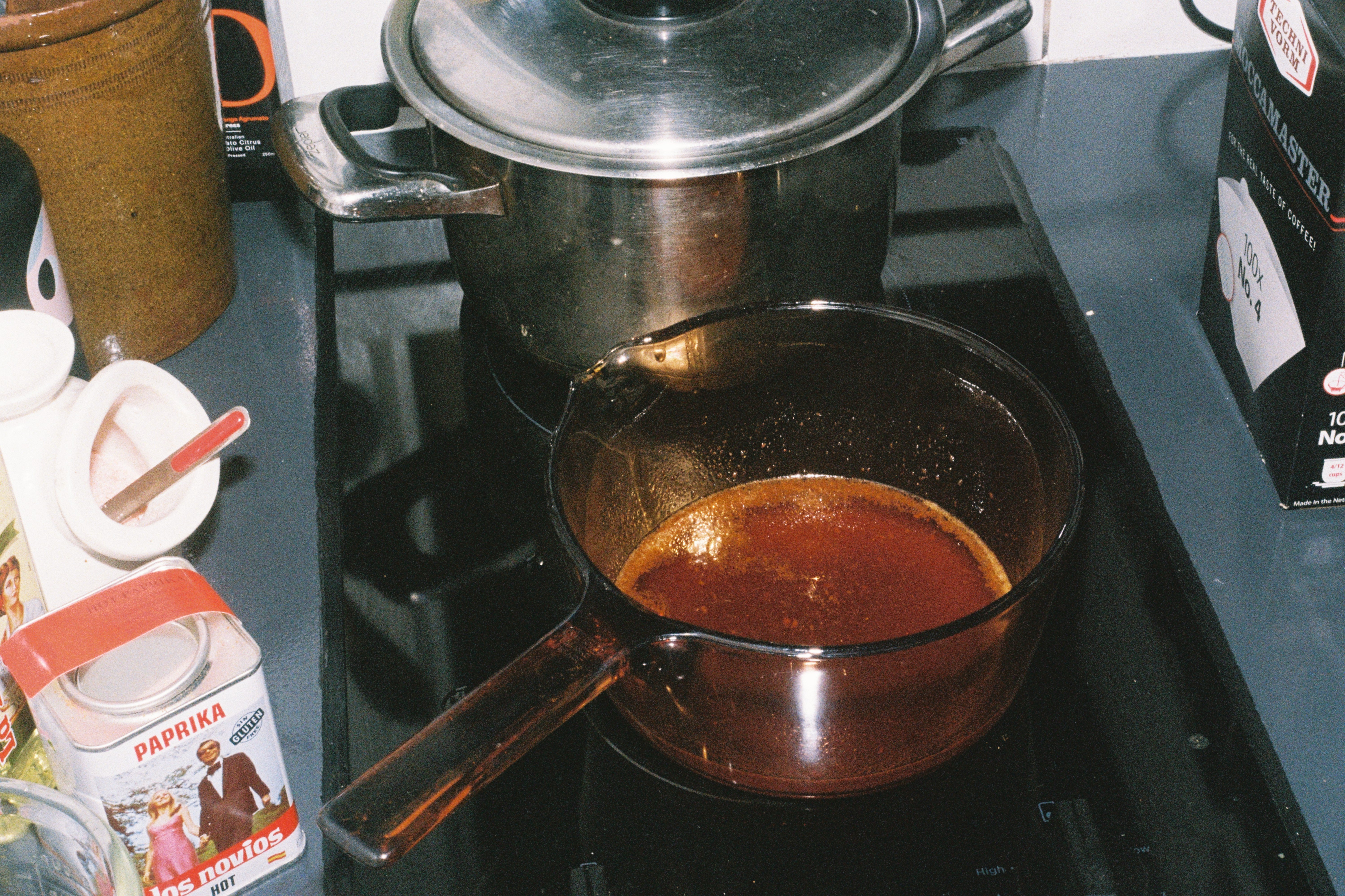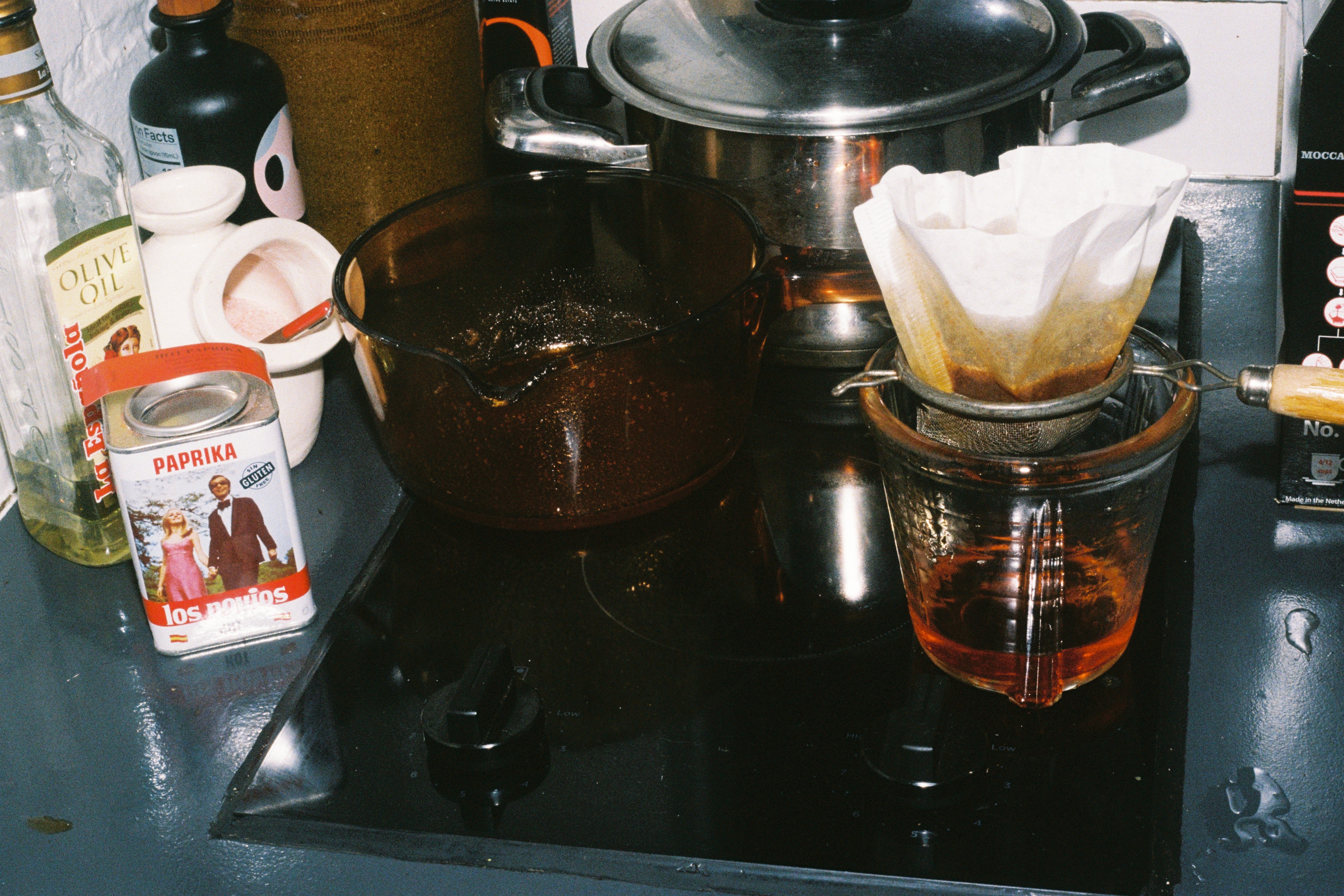 Strain your paprika oil through a coffee filter, approx. 30 minutes. I used a Moccamaster filter.