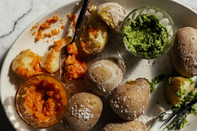 Once the content of the tray is cold, remove the garlic husk and transfer all ingredients to a blender, including the juice. Puree until smooth. If you’d like your sauce to be a bit more runny, add tablespoons of cold water one at a time until you achieve your desired consistency.