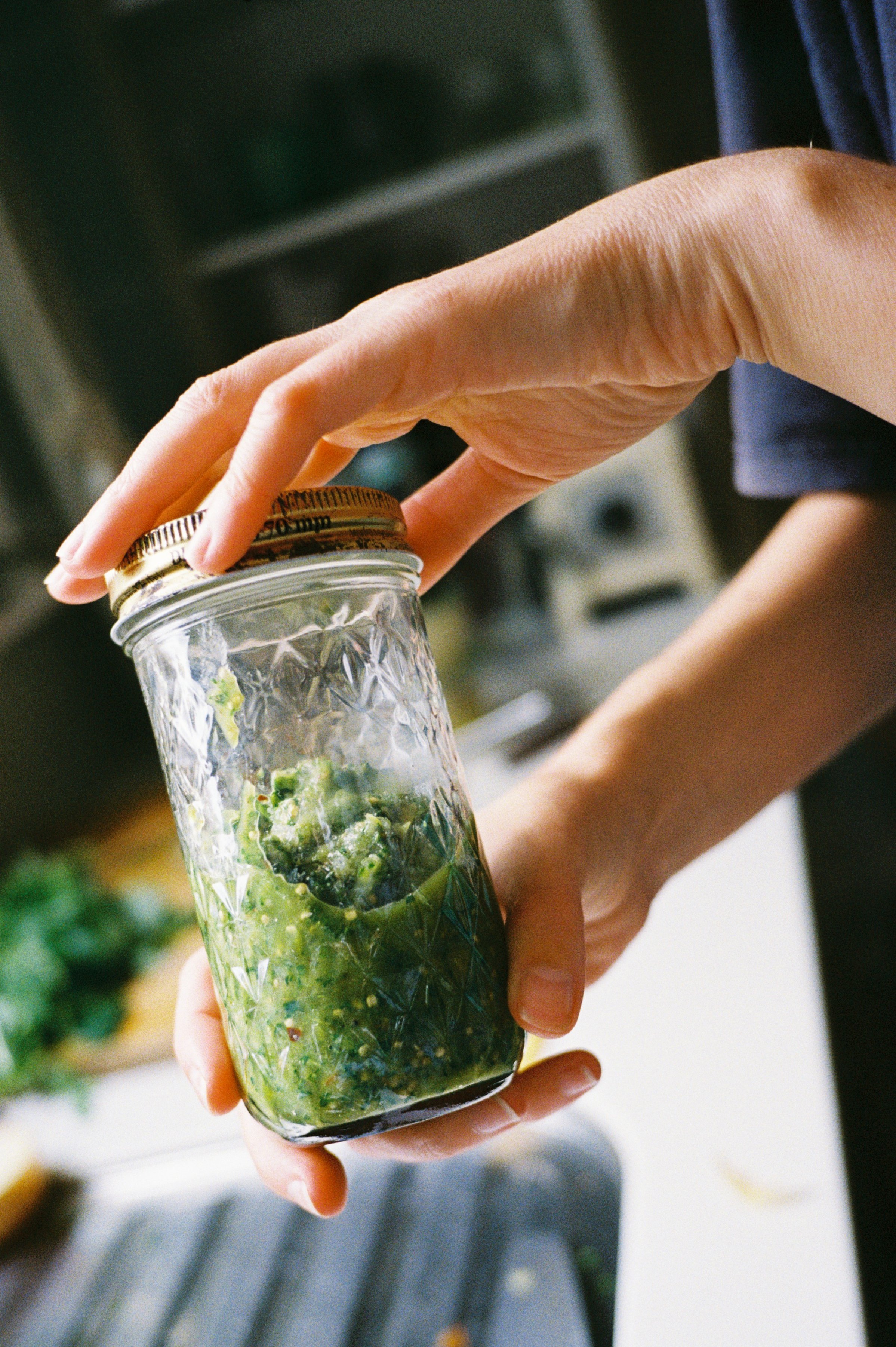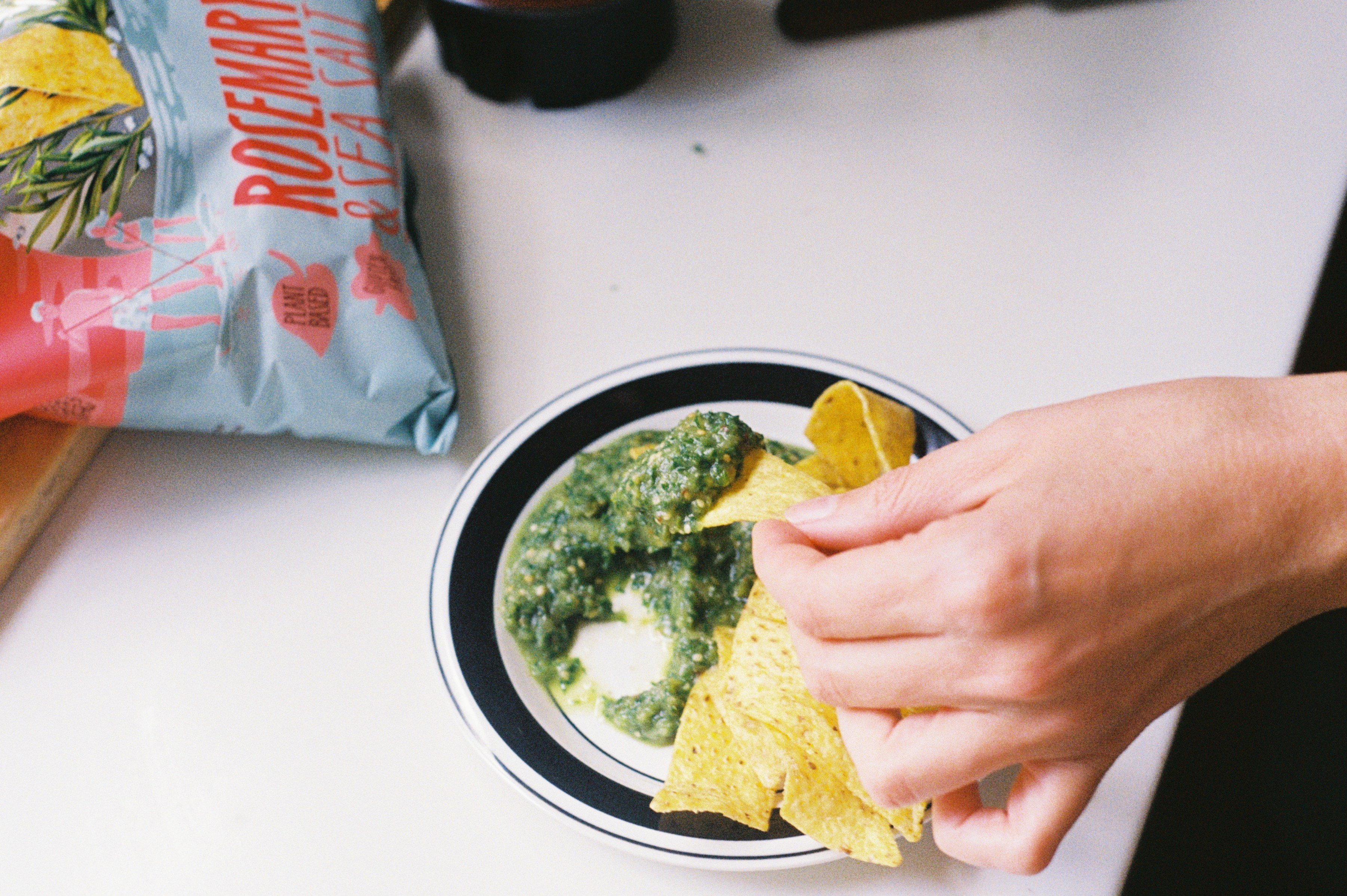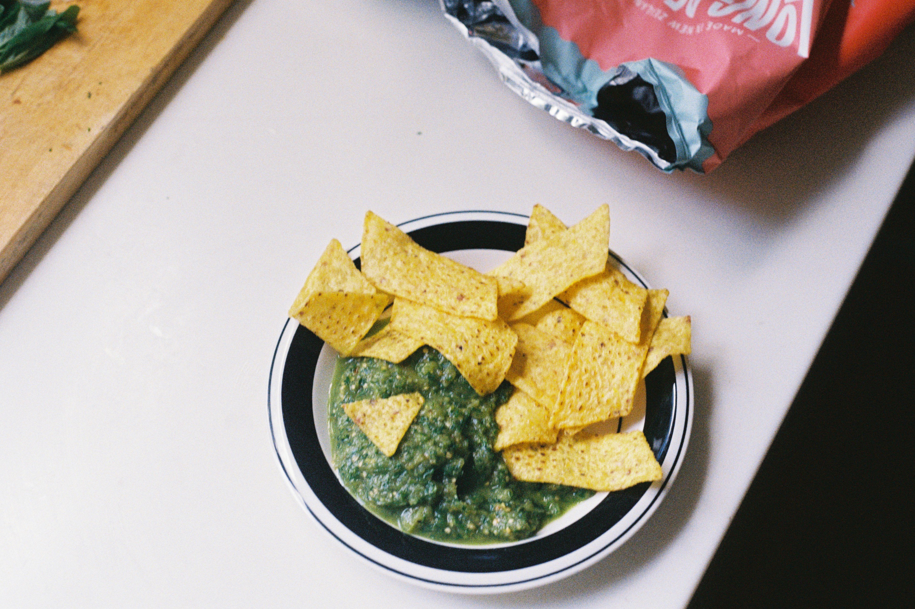 Preheat your oven to 180°C. Line a tray with baking paper and transfer the tomatillos and garlic cloves. Bake for approximately 20 minutes, until the tomatillos and garlic are softened and starting to brown. Turn over midway for heavenly baking.