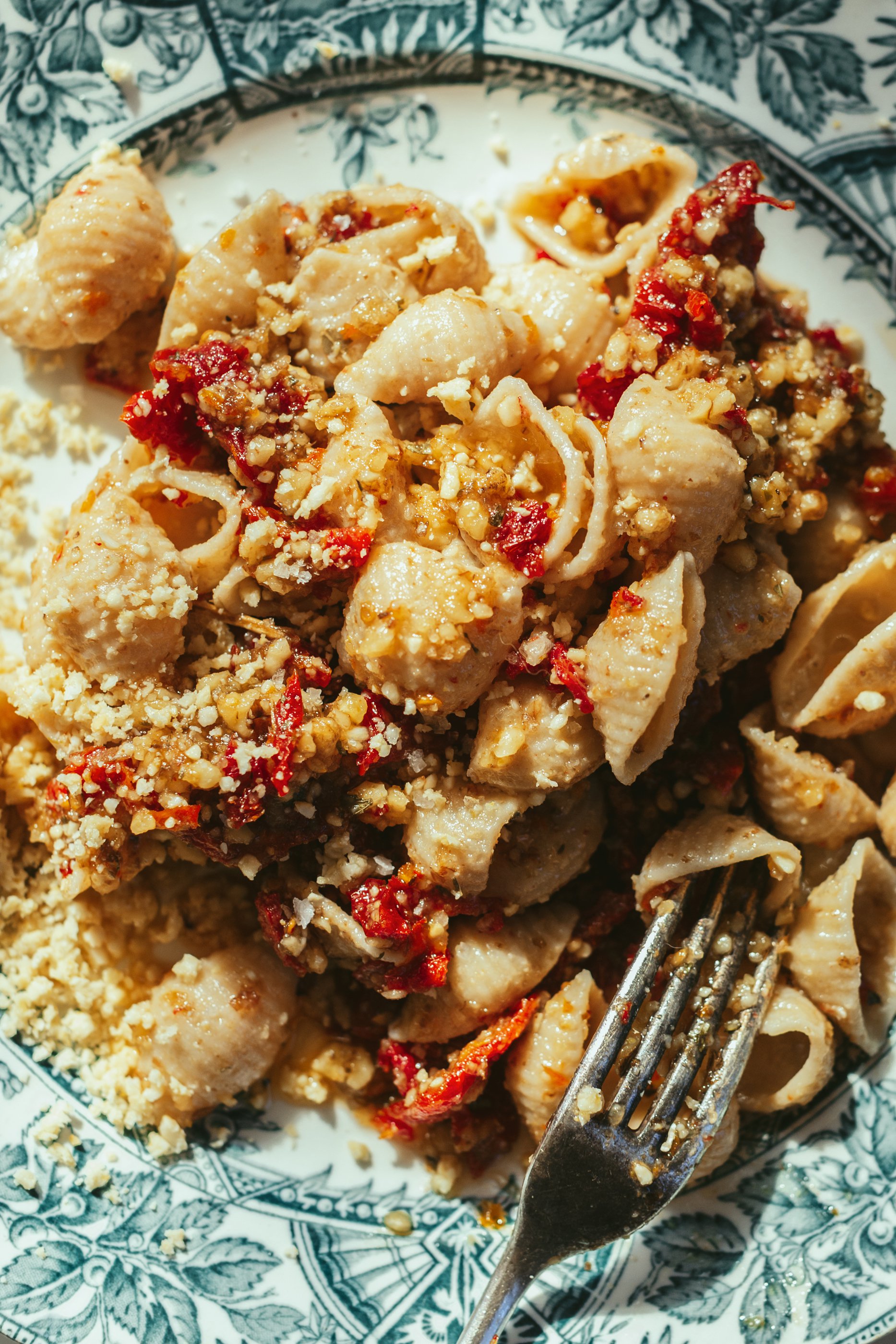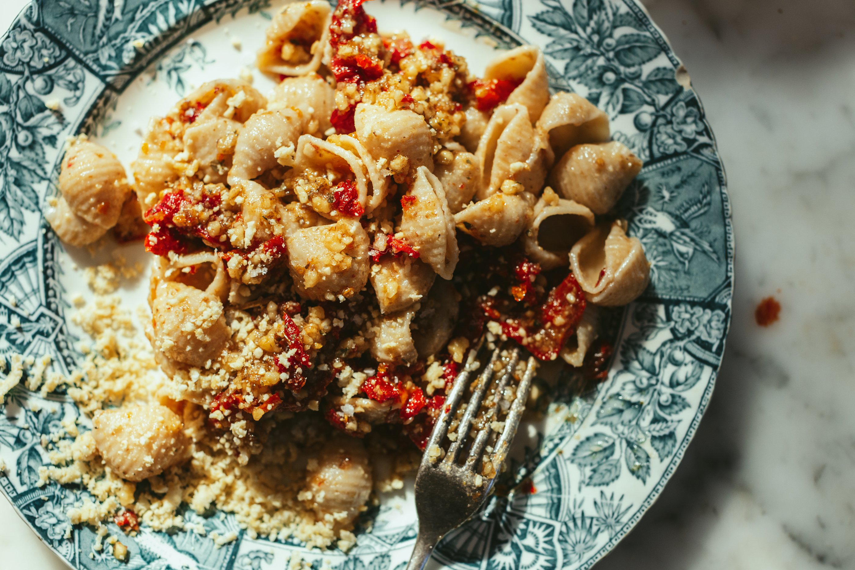 Simple, modern and super-flavourful, leaning heavily on garlic and perhaps, controversial—sundried tomatoes. Slightly sweet and slightly acidic, we love this pesto served with our favourite pasta and cashew nut Parmesan, finished with basil and sea salt flakes. Set against our increasingly hectic lives, this pesto is a celebration of simple ingredients prepared with love and care. Buy the best ingredients you can and let the ingredients speak for themselves.